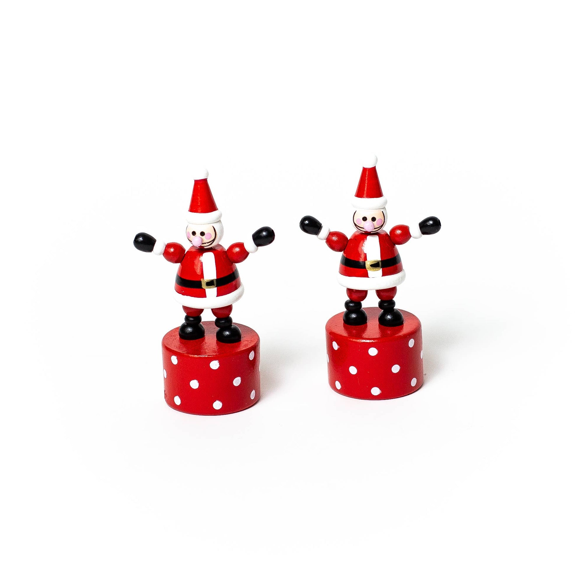 Push the bottom button and watch them collapse - then let go and they pop back up - ready for more action! A classic wooden toy, updated by Jack Rabbit Creations. Great for Stocking Stuffers! Ages 3yrs+.