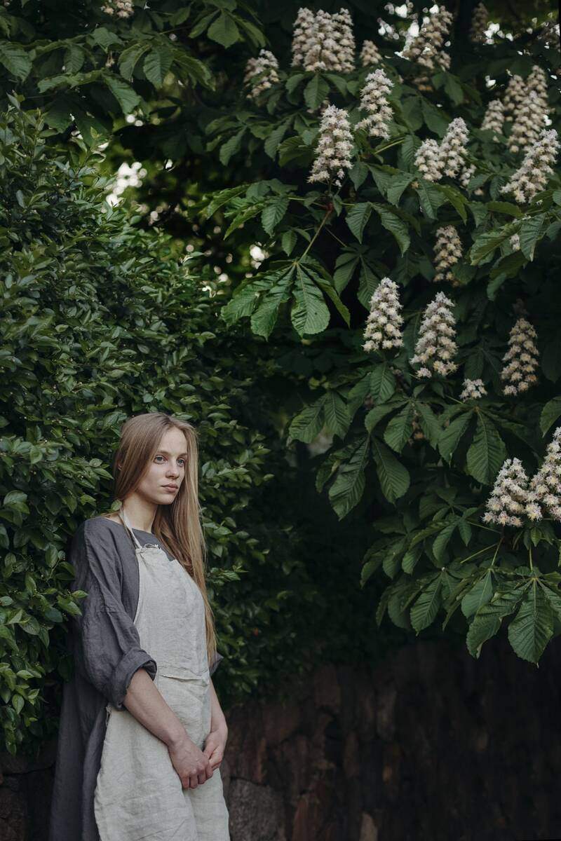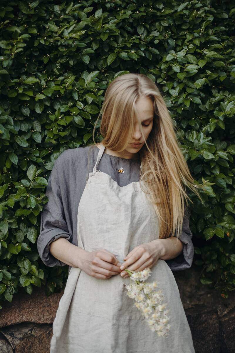 Classic apron, ideal for cooking or gardening. Made of natural linen, it keeps your clothes clean for years to come, while its classic design makes it a lovely piece to wear.