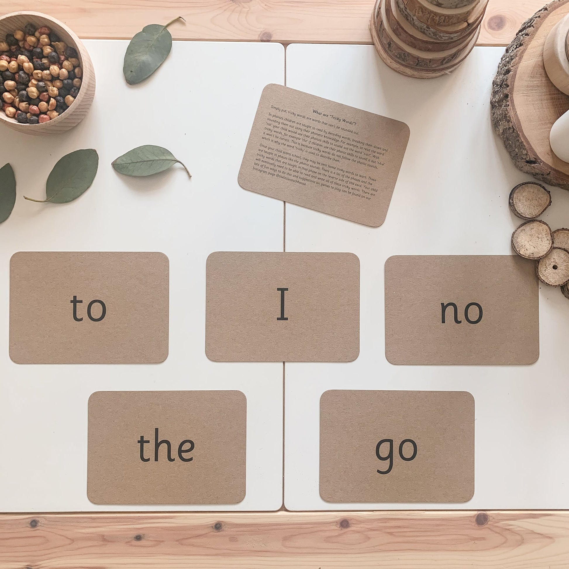 We know how confusing phonics can be for parents so we have included a helpful information card that explains a little bit about tricky words, what they are and why your child will be learning them. On the back of this information card there is a table which lists all the tricky words in their different phases and the order your child will be taught them at school.